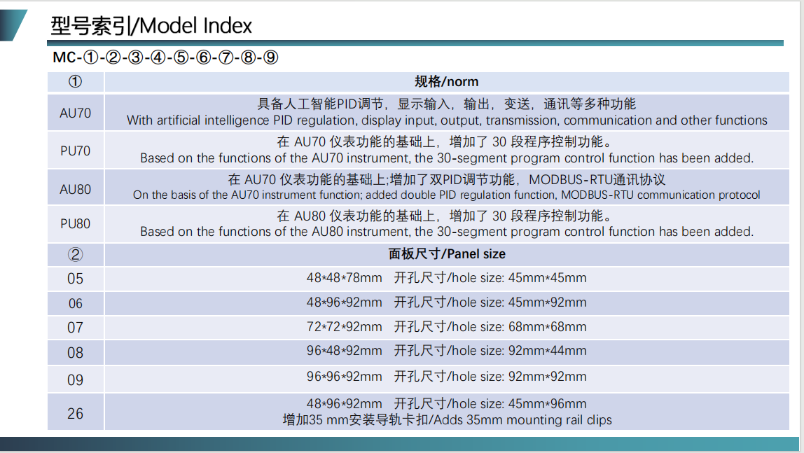 性电压,MV等信号输入;具备AI人工智能PID调节、4位双排LED